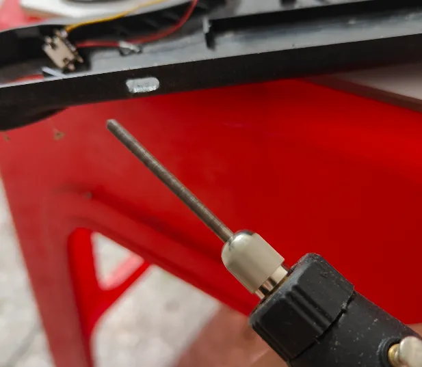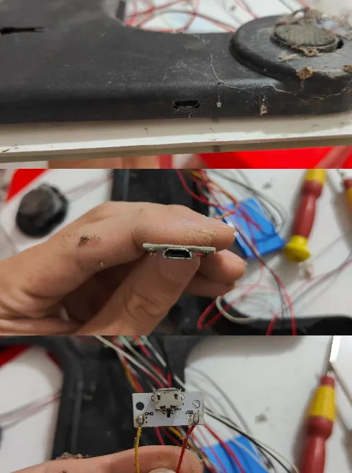之前的接口是micro usb的,type-c接口比micro usb接口大,得用电磨机把接口磨大一点 打上热熔胶固定,再把外壳装回去,完事